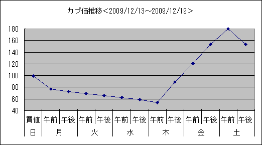 こちらは2009/12/13~2009/12/19のカブ価グラフ。今回もまた「4期」。