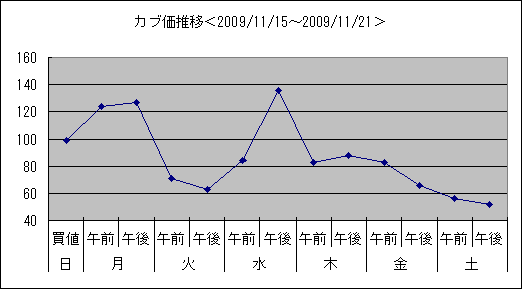 こちらは2009/11/15~2009/11/21のカブ価グラフ。今回は「波型」。