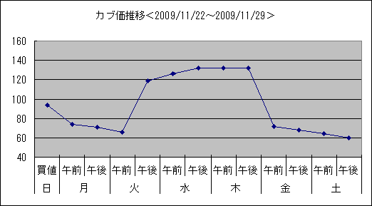 こちらは2009/11/22~2009/11/28のカブ価グラフ。今回は「波型」。