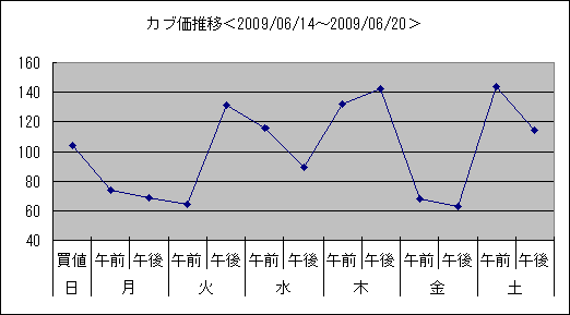 こちらは2009/06/14~2009/06/20のカブ価グラフ。今回は「波型」。