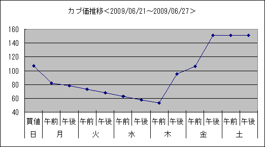 こちらは2009/06/21~2009/06/27のカブ価グラフ。今回は「4期」。