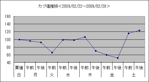 こちらは街森2009/02/15~2009/02/21のカブ価グラフです。