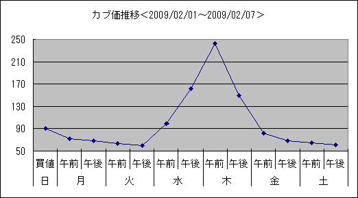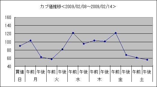 コチラは街森2009/02/08~2009/02/14のカブ価グラフです。